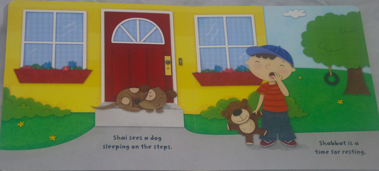 Un dulce libro de cartón en el que un niño pequeño celebra Shabat dando un paseo, apreciando las bendiciones de aquellos que encuentra en el camino: familia, amigos y animales.aa