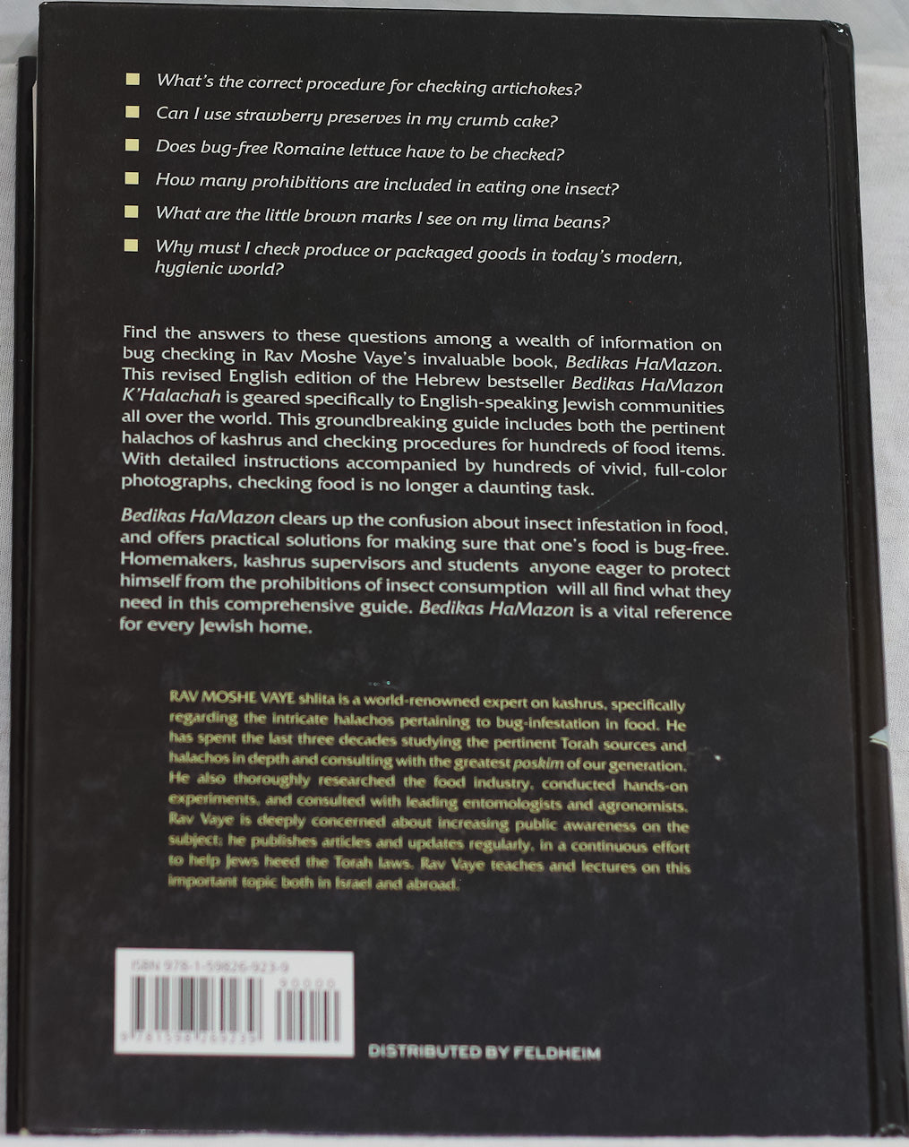 Bedikas HaMazon, del reconocido Rav Moshe Vaye, es una obra de referencia fundamental sobre las leyes de kashrut relacionadas con la inspección de alimentos y la prevención del consumo de insectos. El libro responde de forma clara y práctica a preguntas comunes sobre frutas, verduras y productos procesados, presentando procedimientos detallados basados en la halajá.